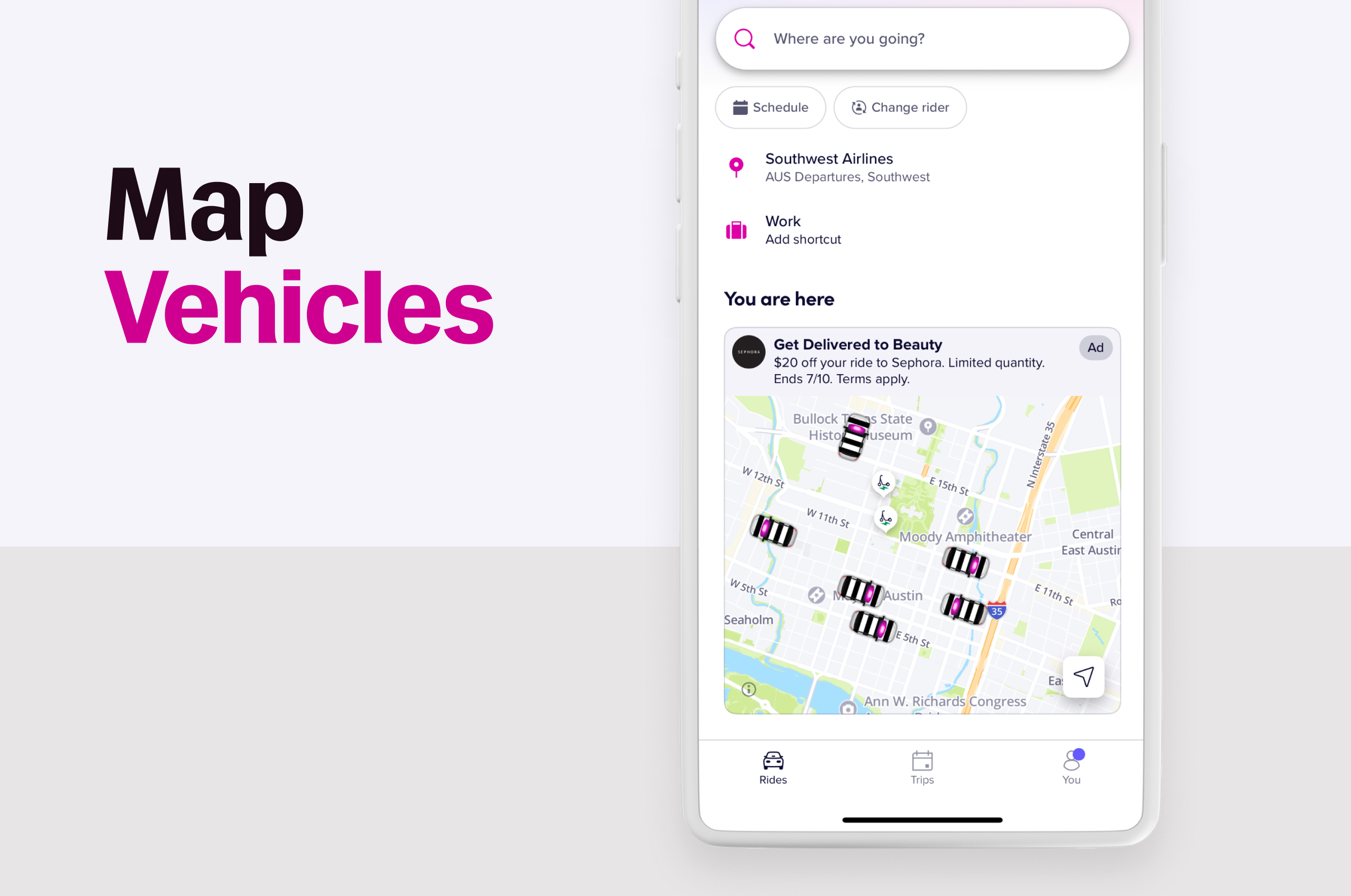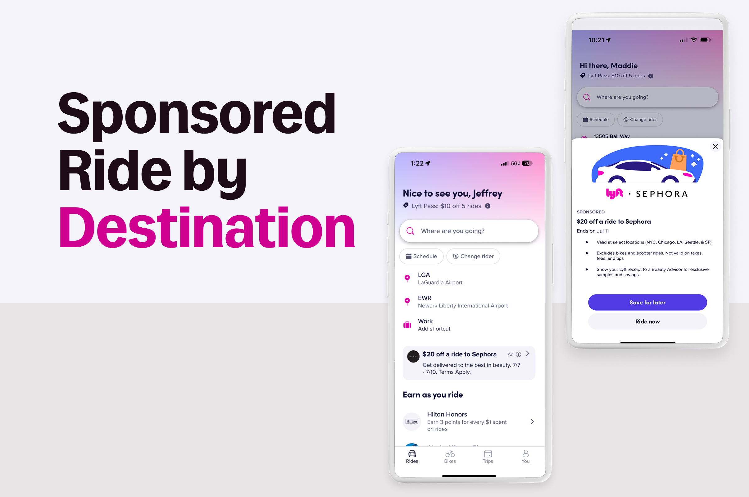 The promotion was amplified through a multi-channel strategy that included a 24-hour national takeover of the Lyft app, a custom map integration, and targeted in-app video ads. To bring the campaign to life on the streets, vehicles were wrapped in Sephora's iconic branding, with some featuring custom 3D shopping bag toppers, creating a high-impact, can't-miss OOH presence.
